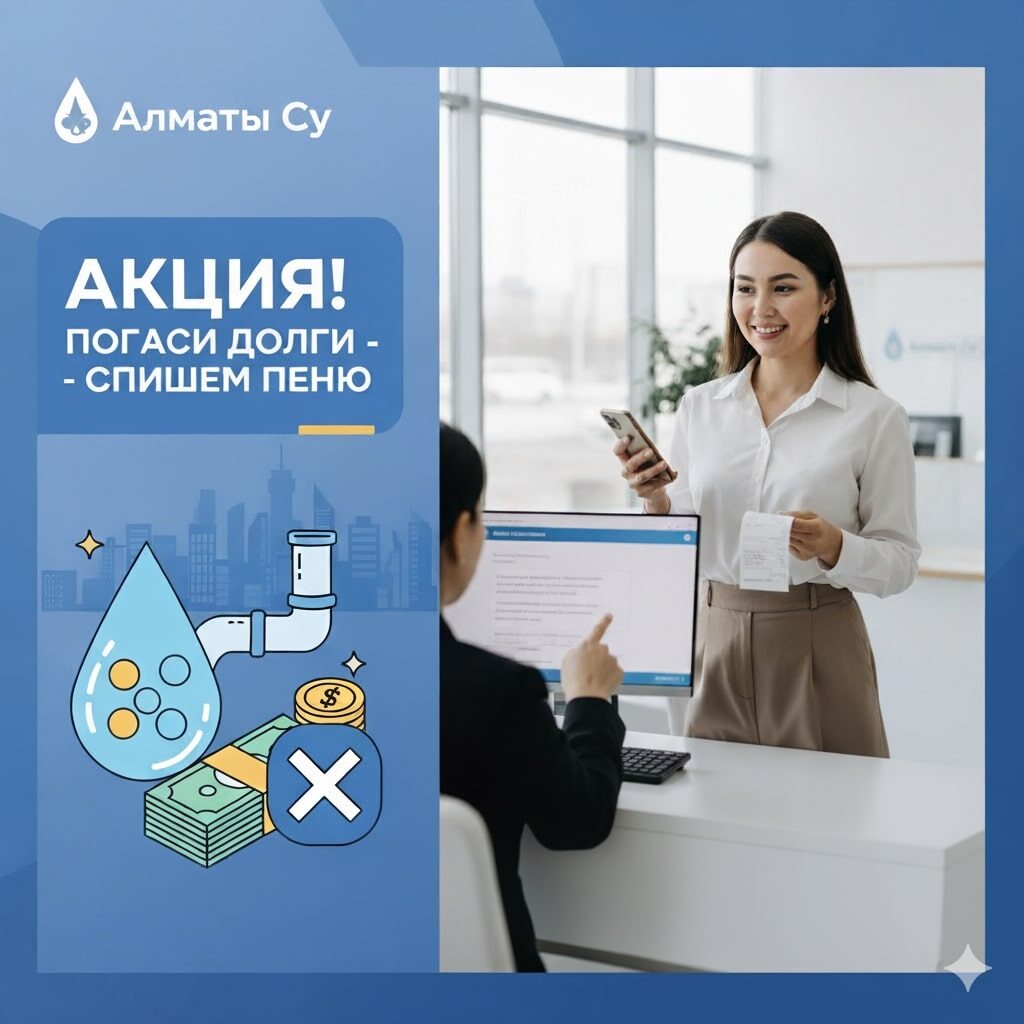 Для участия в акции, необходимо до конца декабря текущего года полностью оплатить имеющуюся задолженность, обратиться с письменным заявлением в один из центров по обслуживанию потребителей ГКП «Алматы Су» приложив к заявлению копию квитанции об оплате (кассовый чек).